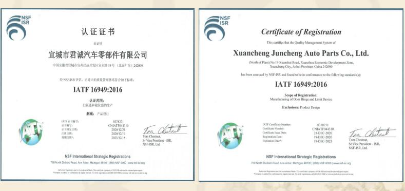 宣城市君誠汽車零部件有限公司是專業生產各類汽車鉸鏈及限位器的民營企業,總投資3000余萬元,位于宣城高新技術產業開發區,緊鄰宣廣、宣蕪高速公路,地理位置優越,交通便捷。是“國家高新技術企業、知識產權貫標企業、安徽省商標示范企業、安徽省科技型企業”,已獲得國家發明專利18項,實用新型發明專利4項。主要從事各類汽車門鉸鏈及限位器的設計、研發、生產、和銷售,具有專業的合作團隊。自2015年正式生產至今,已形成一整套完整的生產、質量管理體系。并已通過國家強制性產品認證“3C”體系認證及IATF16949國際質量體系認證。在生產設備上,公司擁... 【查看詳細】